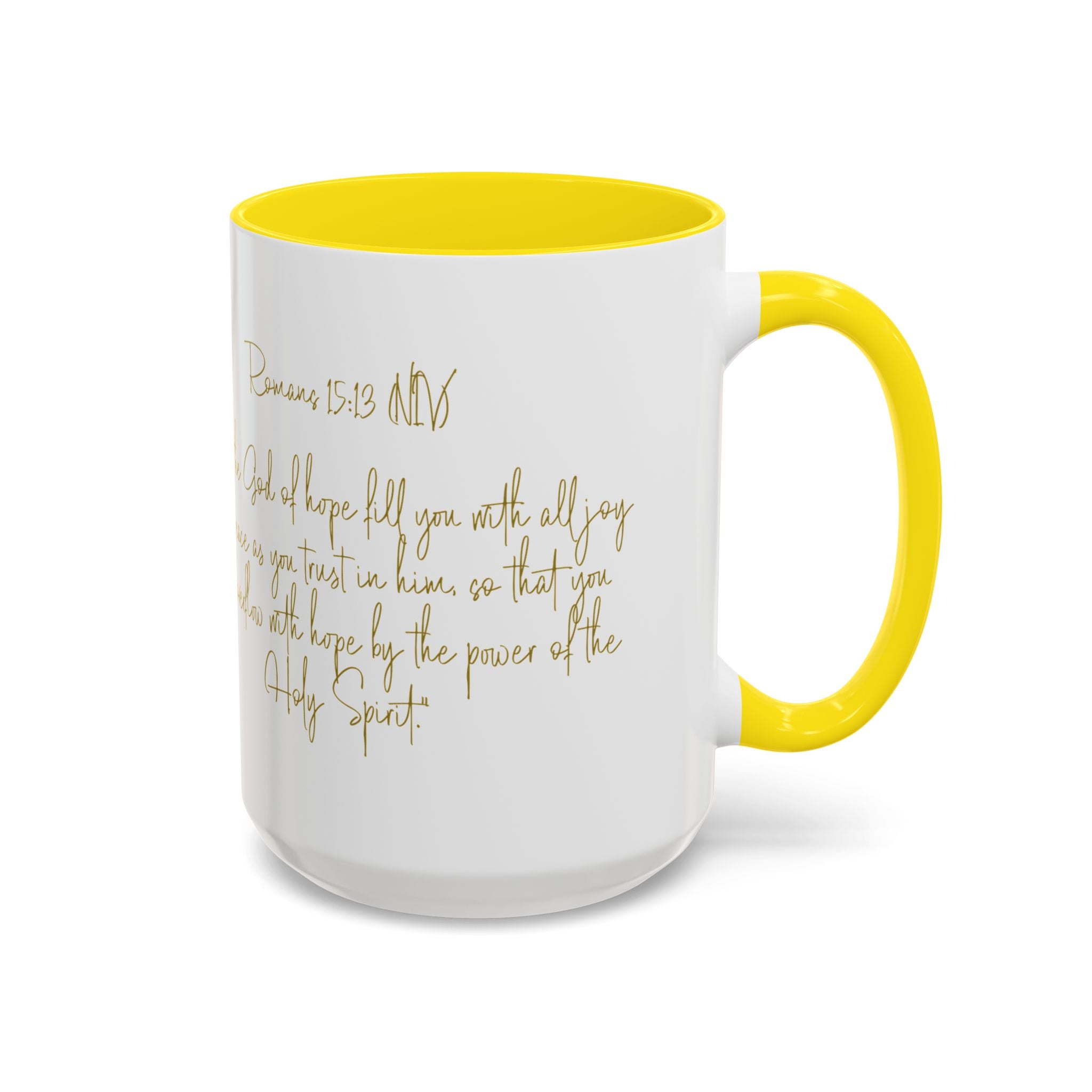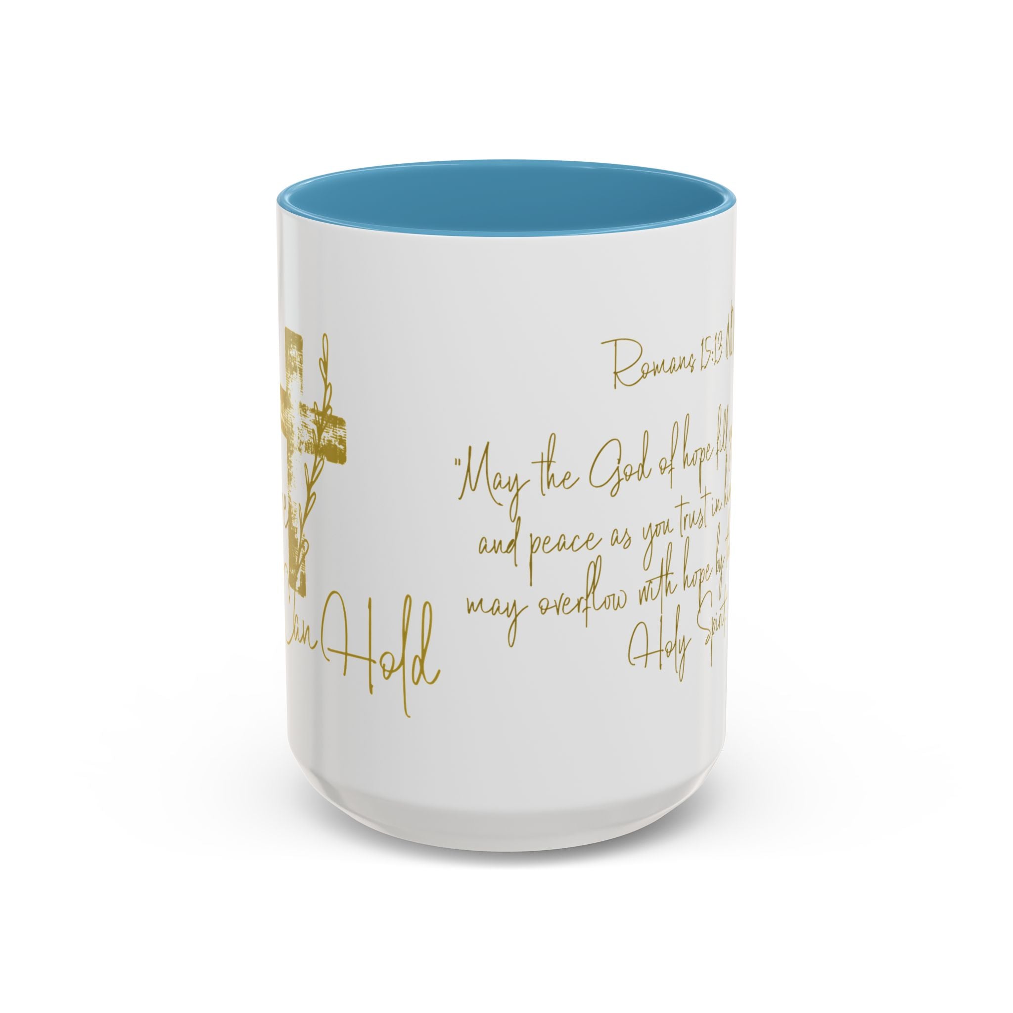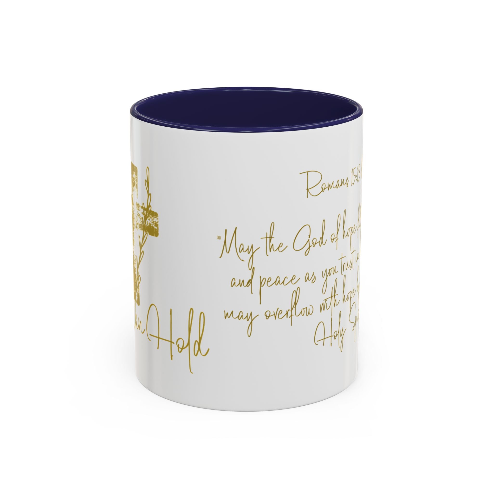 Christian Scripture Coffee Mug – Romans 15:13 Gold Calligraphy Accent Mug (11/15oz)
