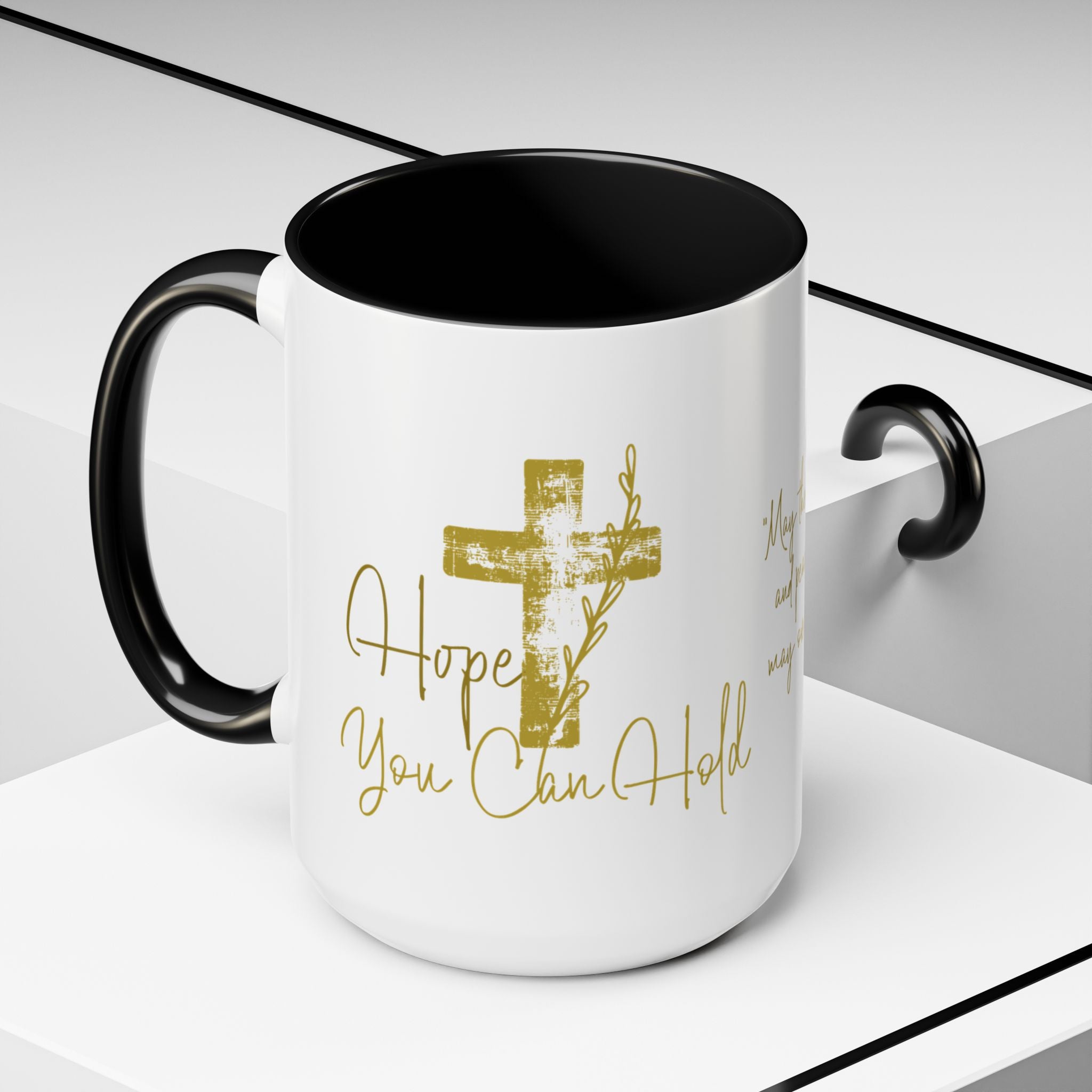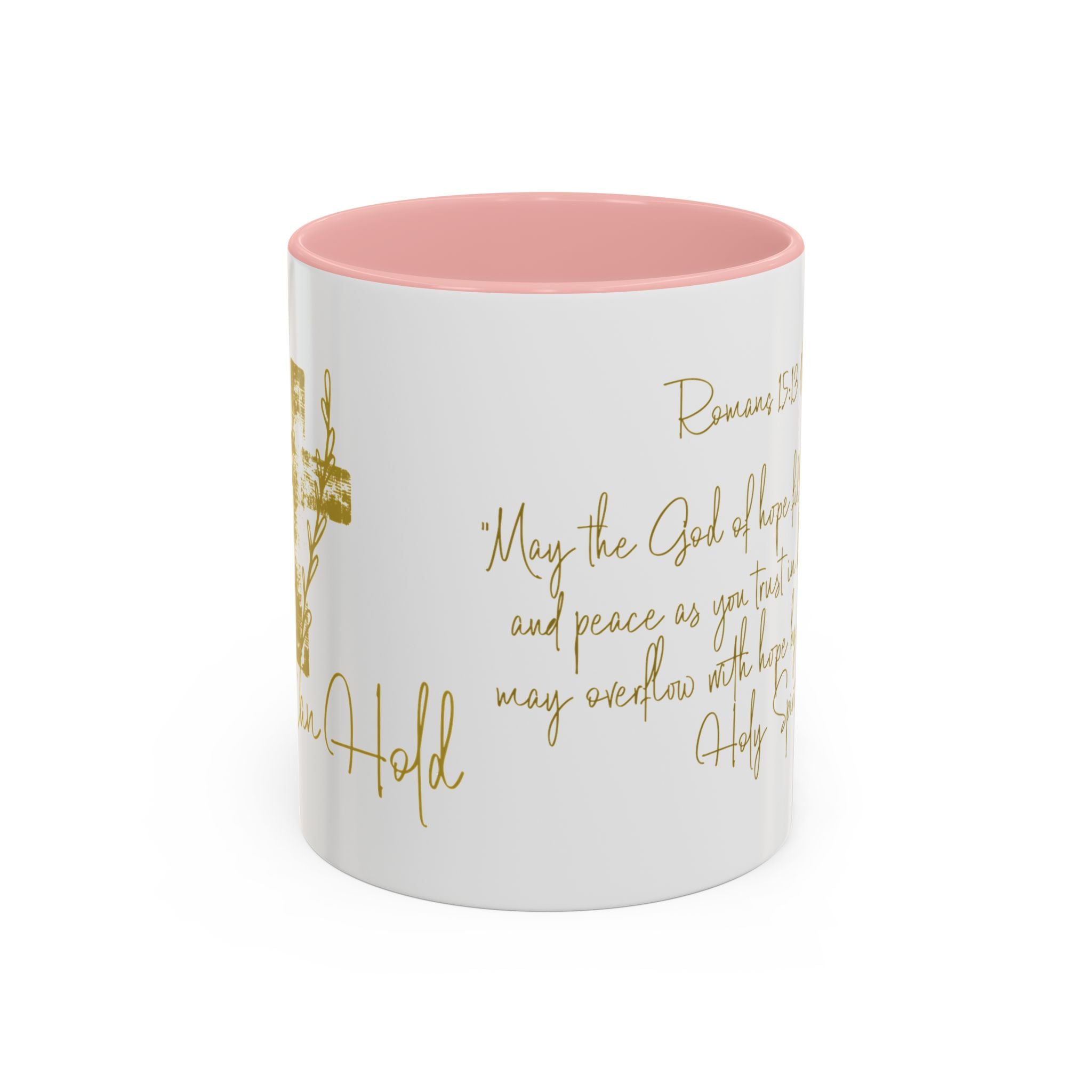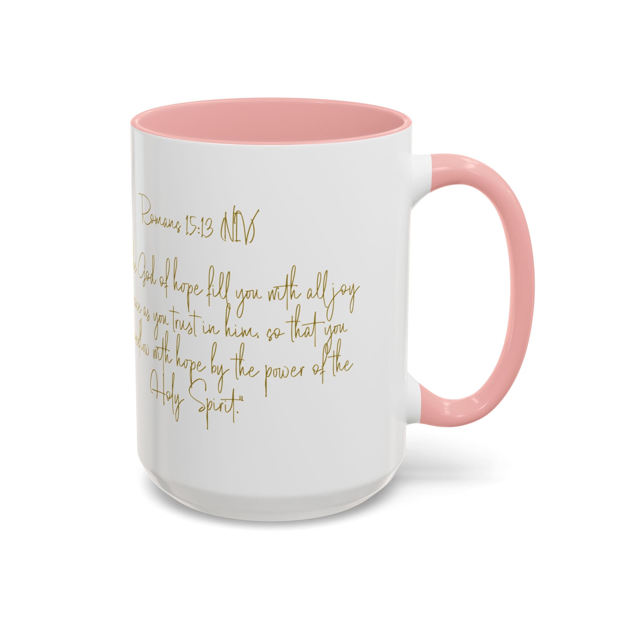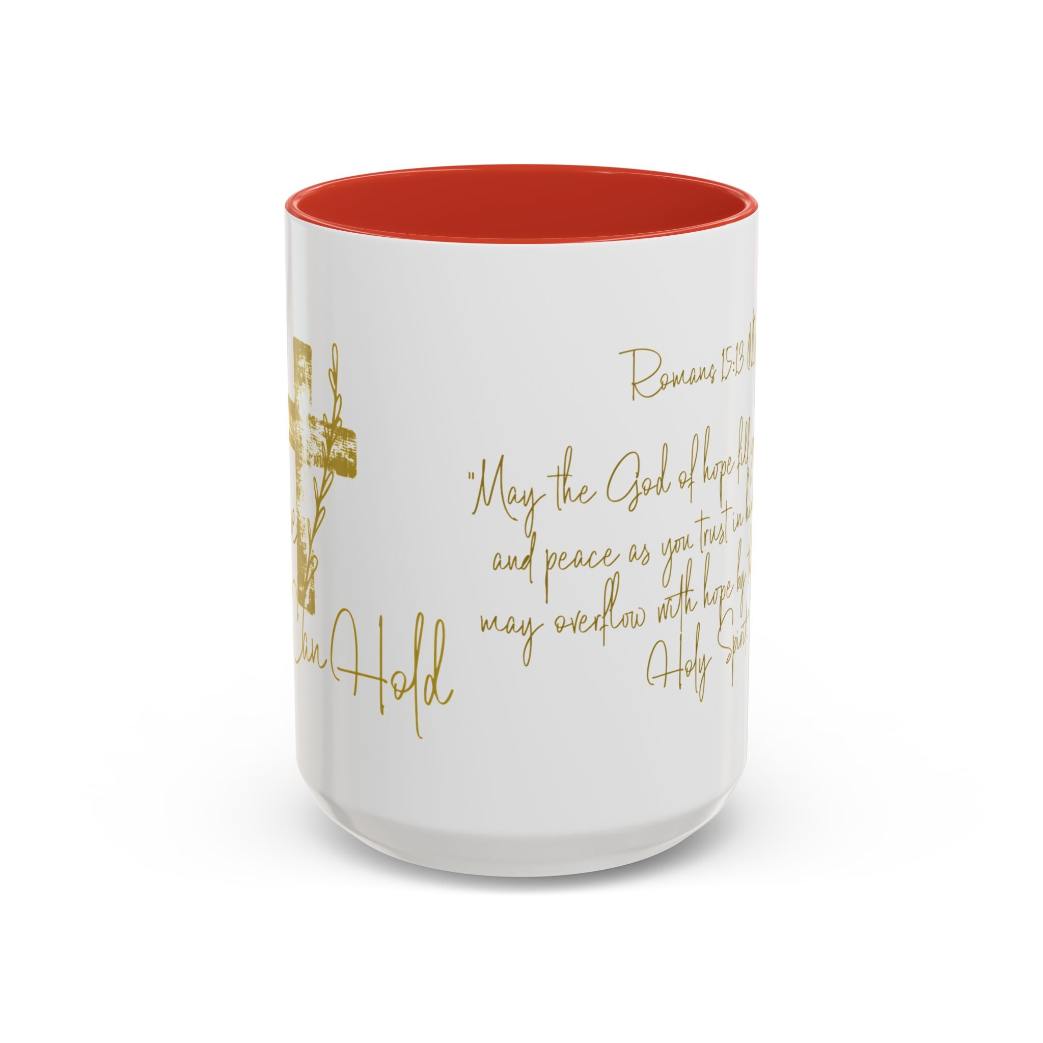 Christian Scripture Coffee Mug – Romans 15:13 Gold Calligraphy Accent Mug (11/15oz)