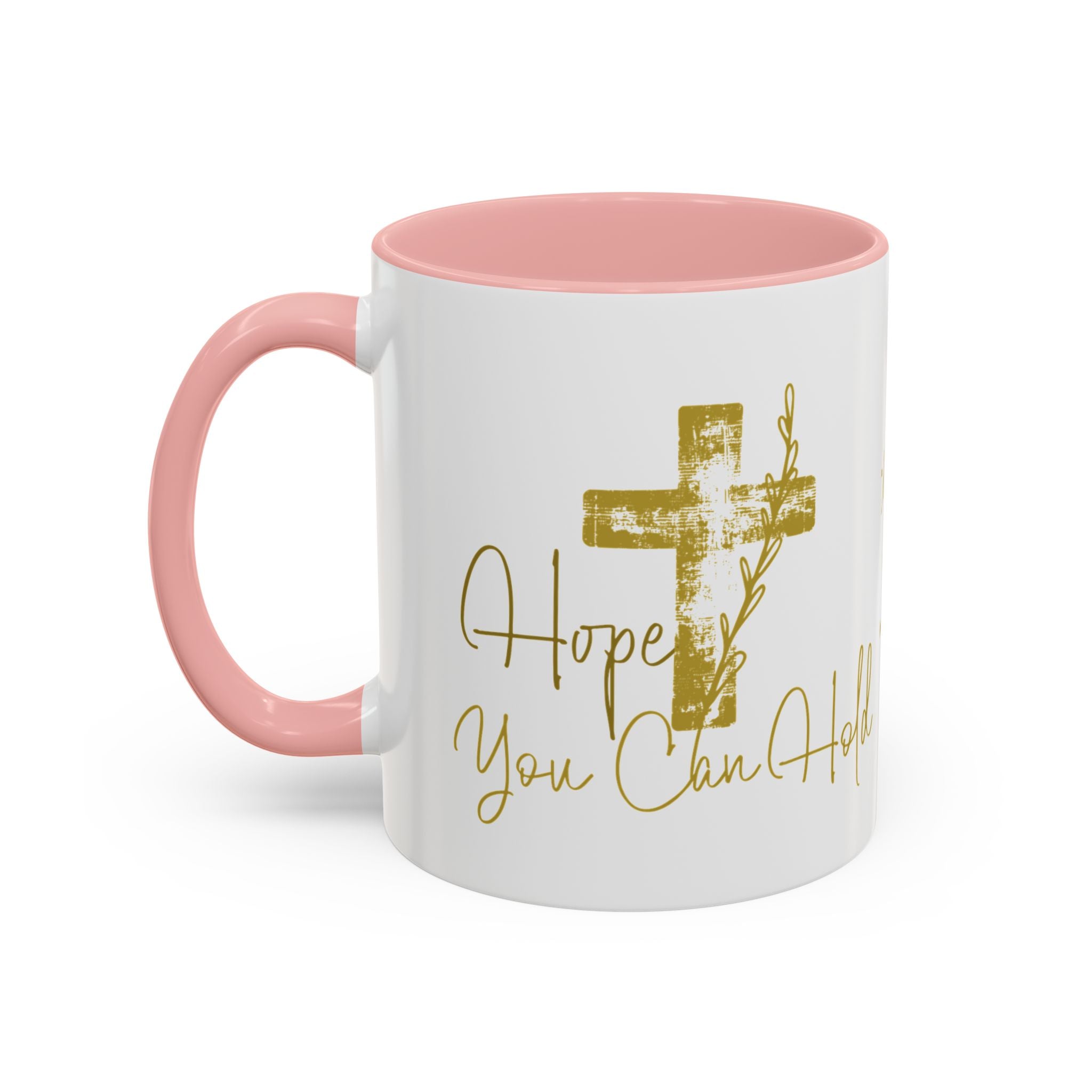Warmth in your hands, comfort in your morning. This ceramic mug blends glossy white with a bold colored interior and handle to frame a delicate, gold-scripted scripture and soft cross illustration. It feels like quiet moments of reflection—coffee steaming, a bookmarked page, a pause to breathe. The subtle contrast adds a touch of reverence to everyday routines and brings gentle encouragement to mornings, study times, or evening wind-downs.