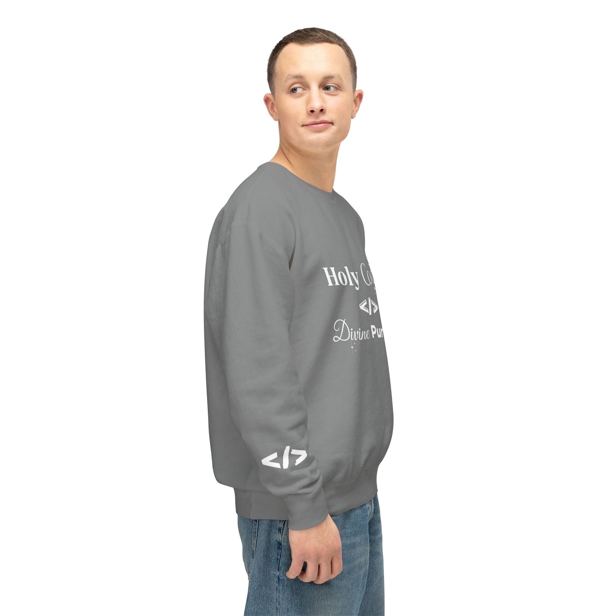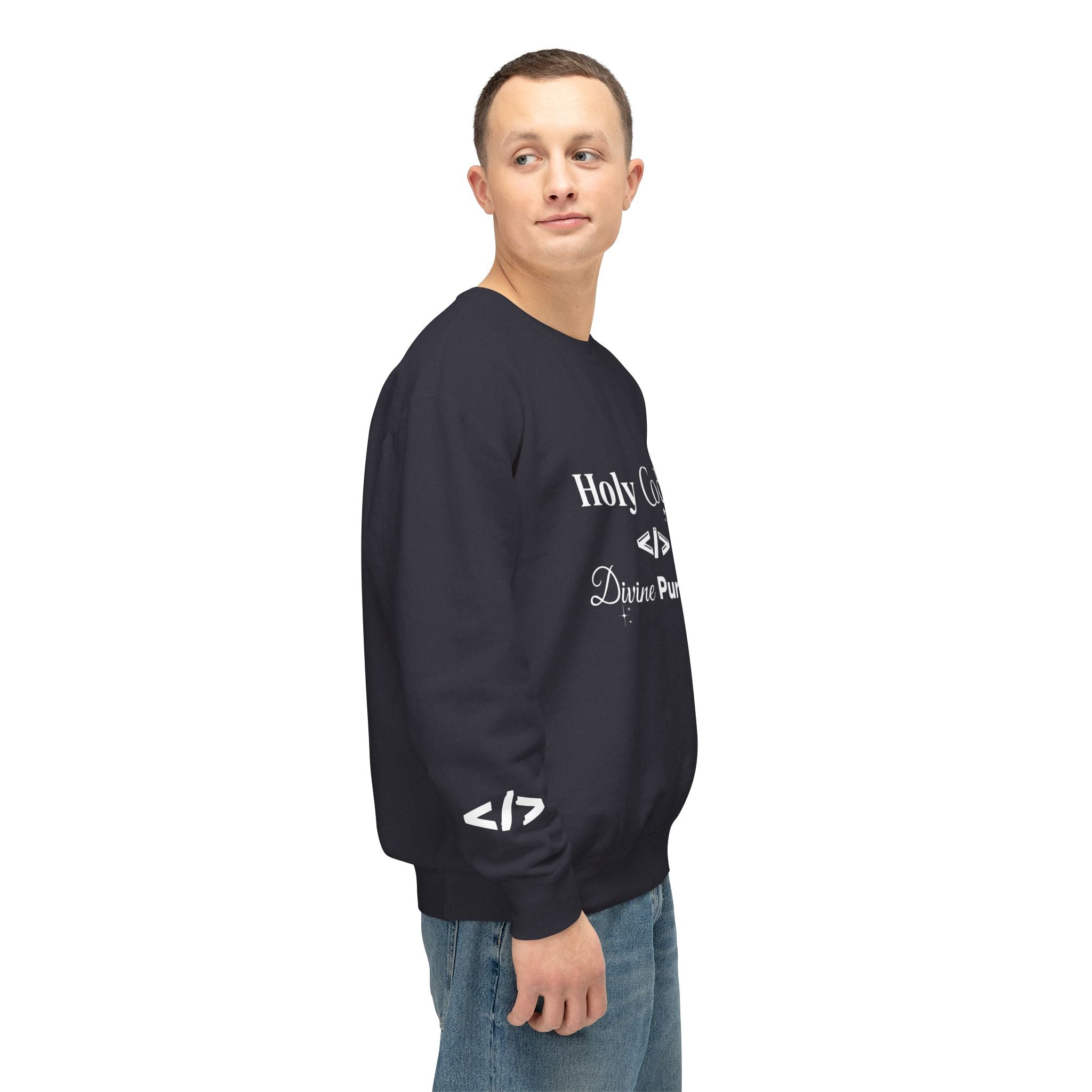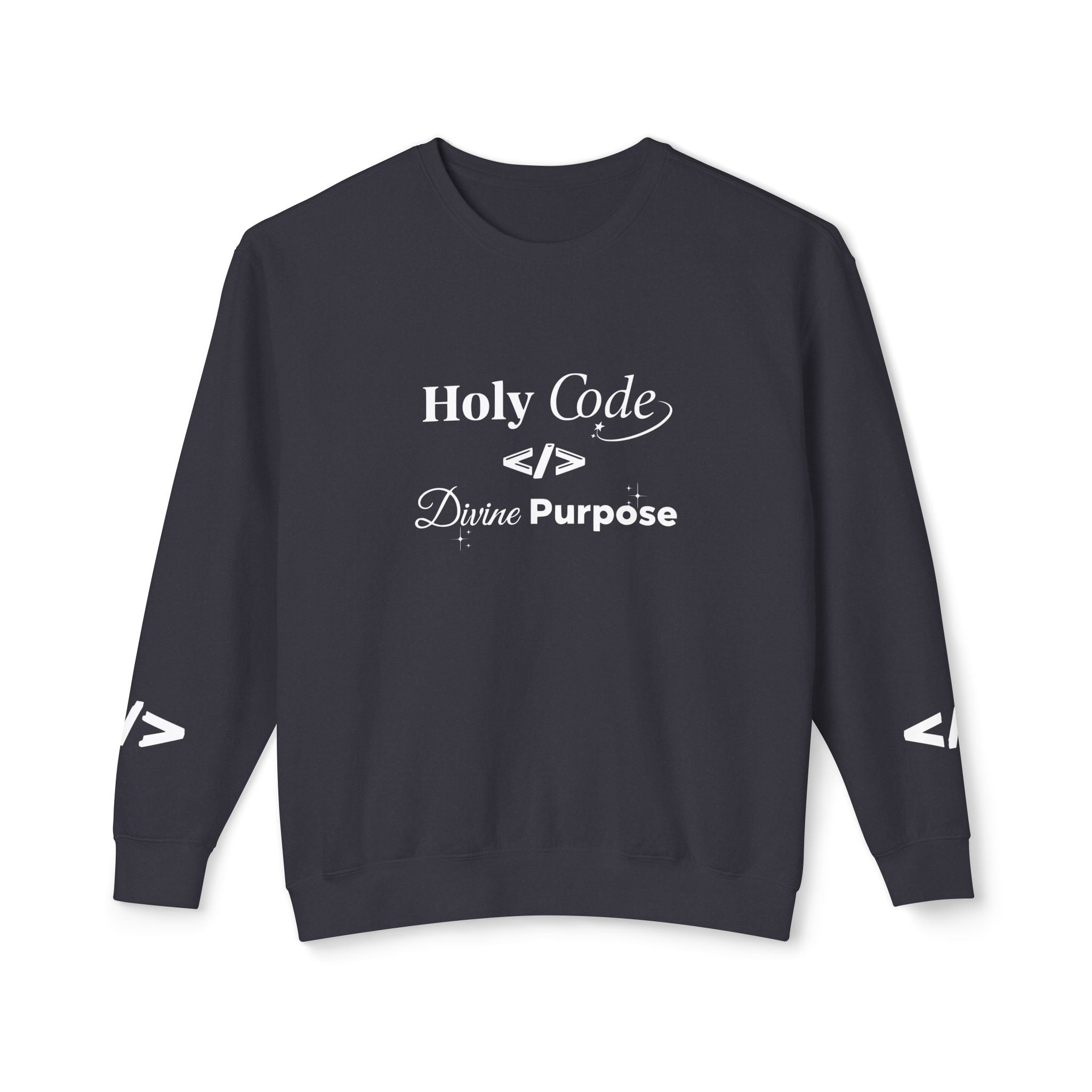 Holy Code Crewneck Sweatshirt — "Divine Purpose" Programmer Graphic