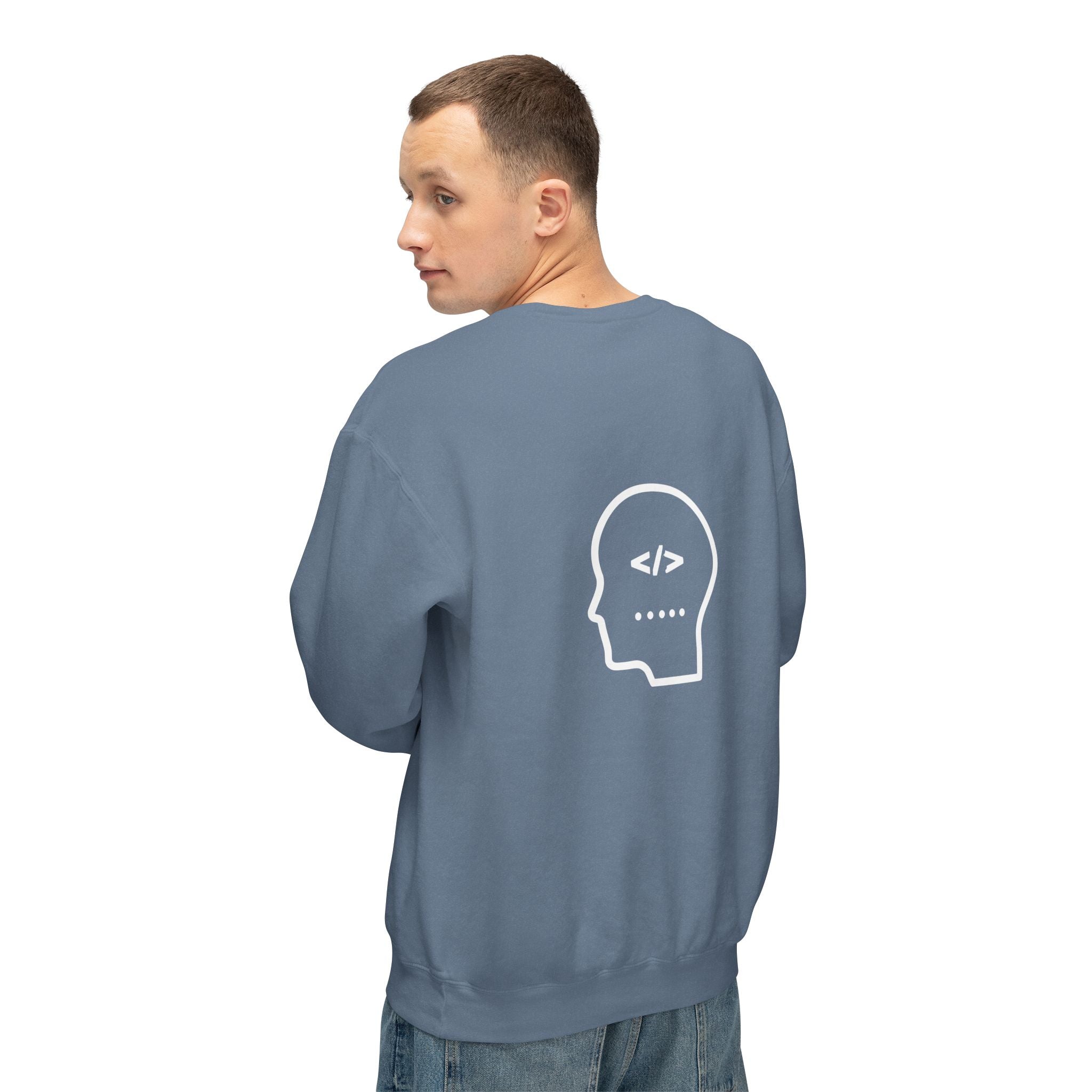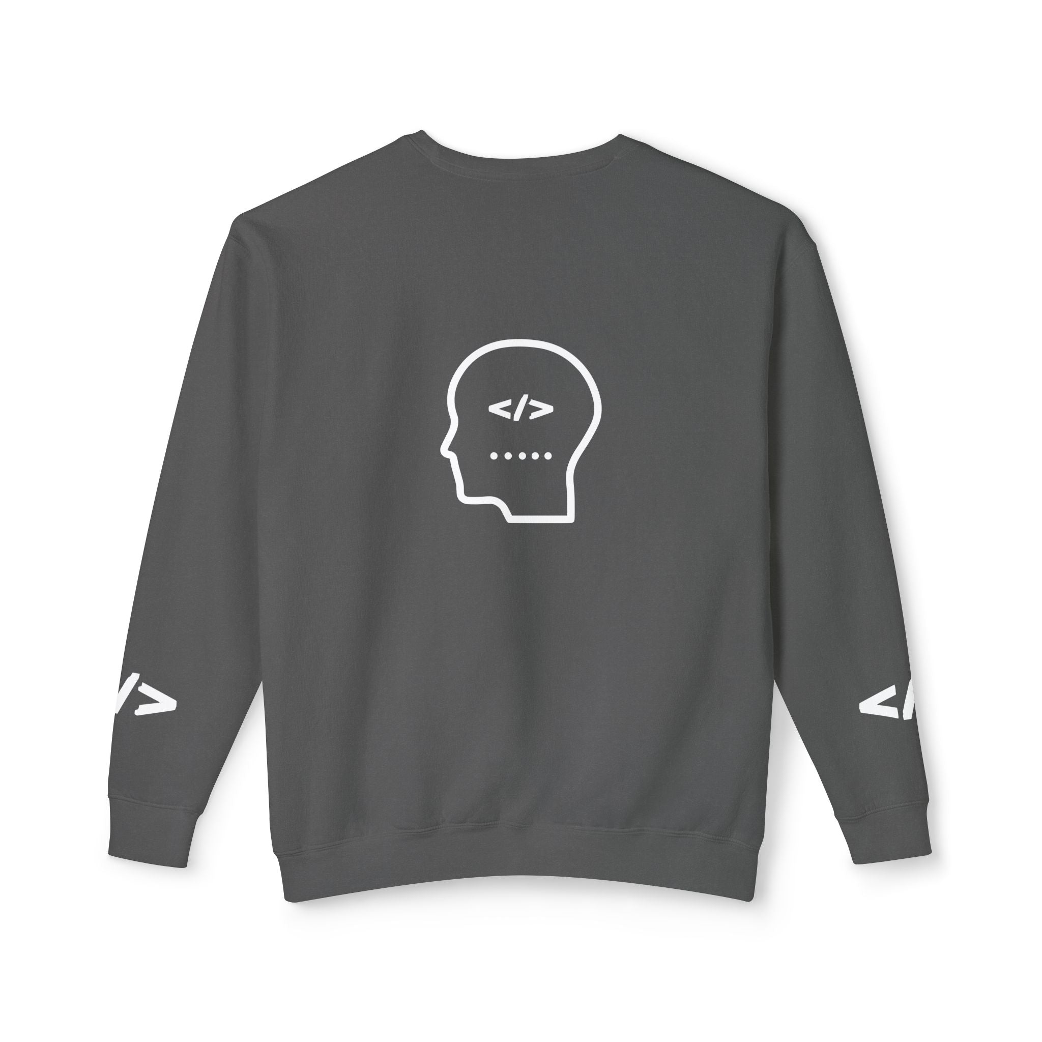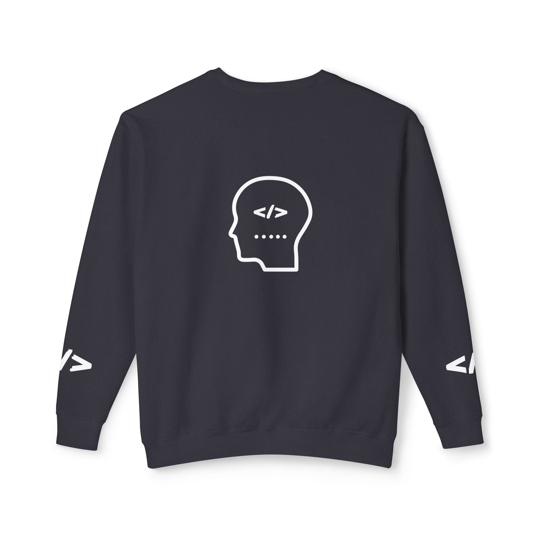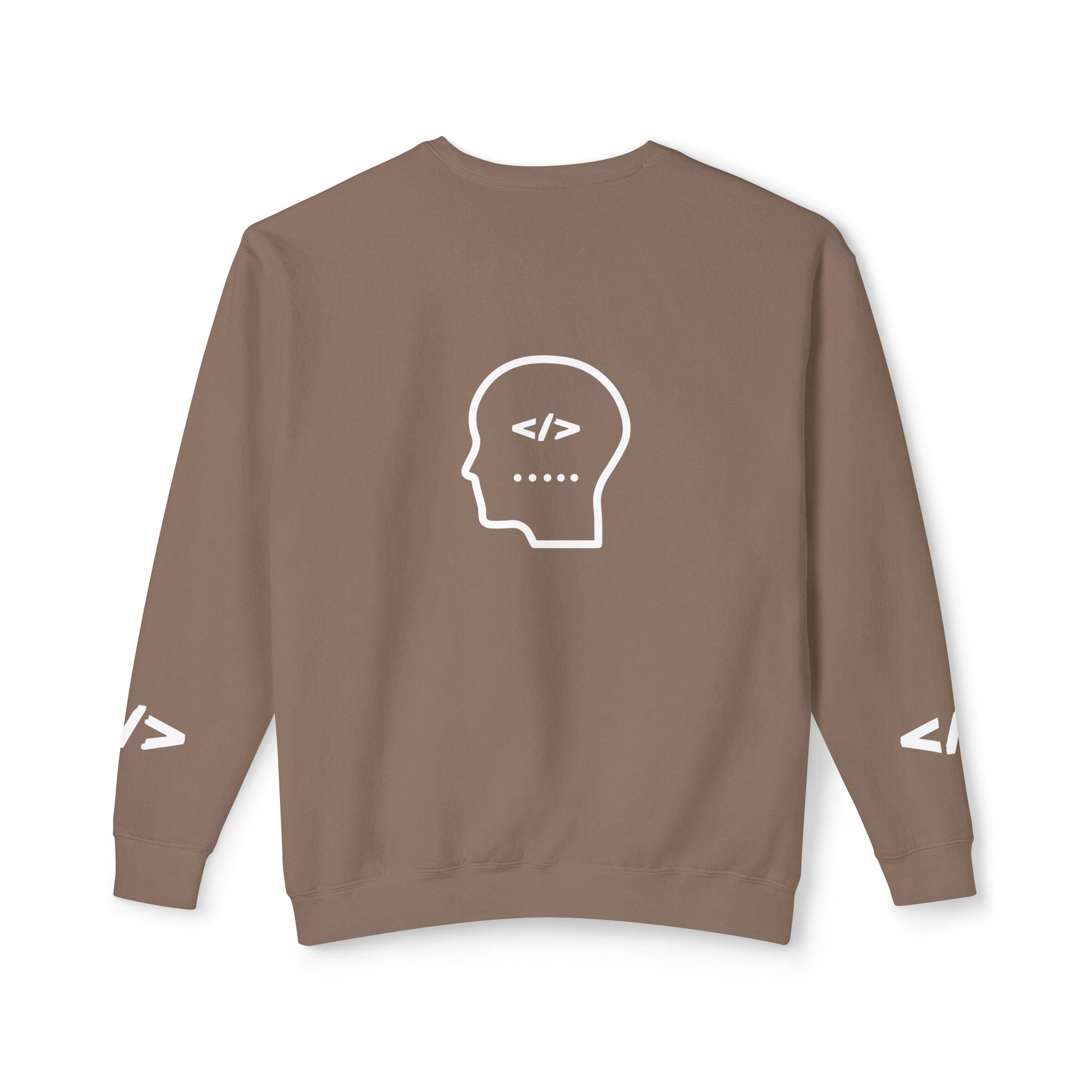 Warm, soft, and quietly clever — this lightweight crewneck speaks to people who live between logic and wonder. The front reads “Holy Code / Divine Purpose” in a mix of serif and script, a gentle nod to faith and craft. A minimalist head-with-code icon rests on the back, while subtle angle-bracket marks appear on each sleeve for an extra coder’s wink. Wear it to late-night debugging sessions, Sunday meetups, or casual coffee runs. The relaxed fit and light fabric make it easy to layer over tees or under jackets, so it becomes a go-to for transitional weather and conversation-starting comfort.