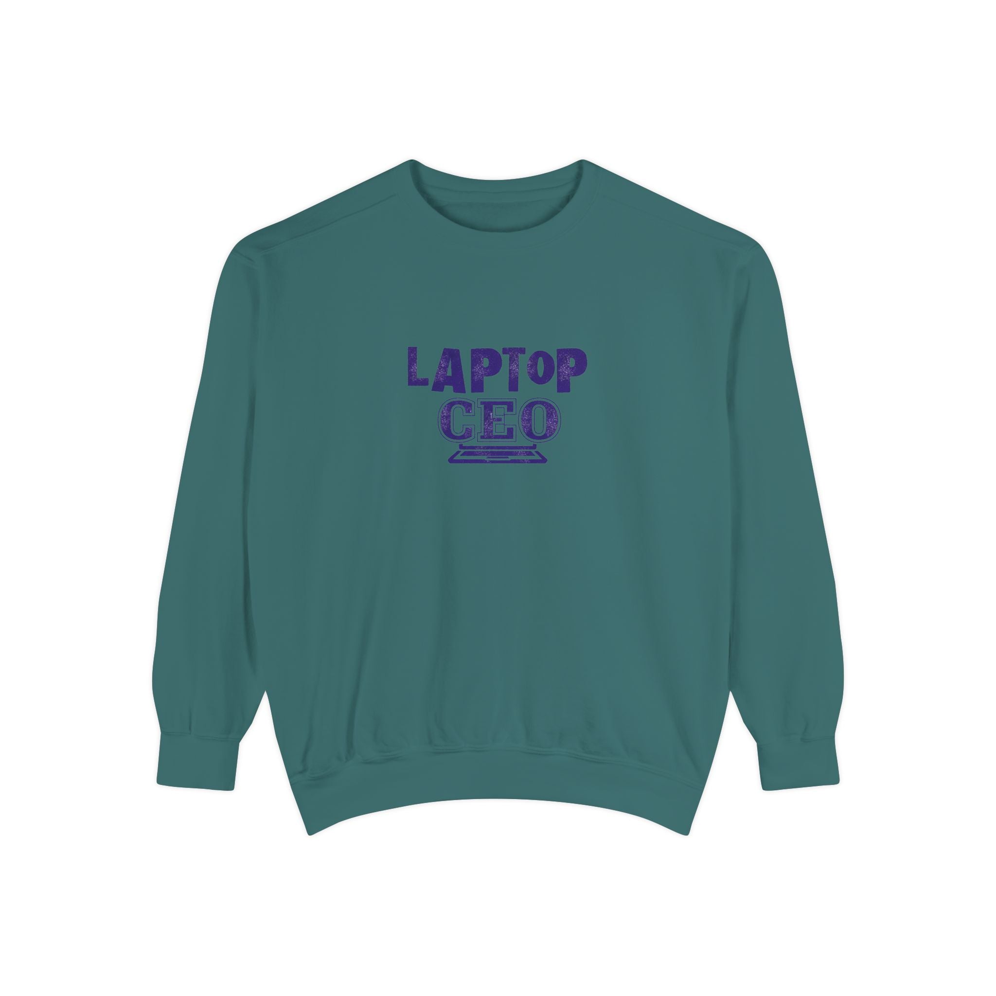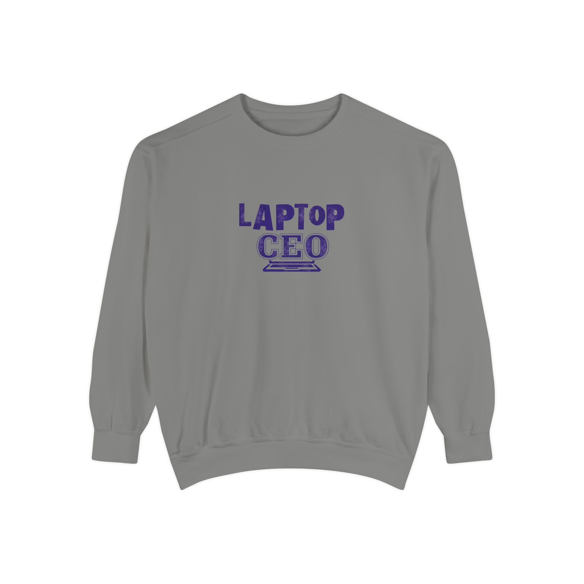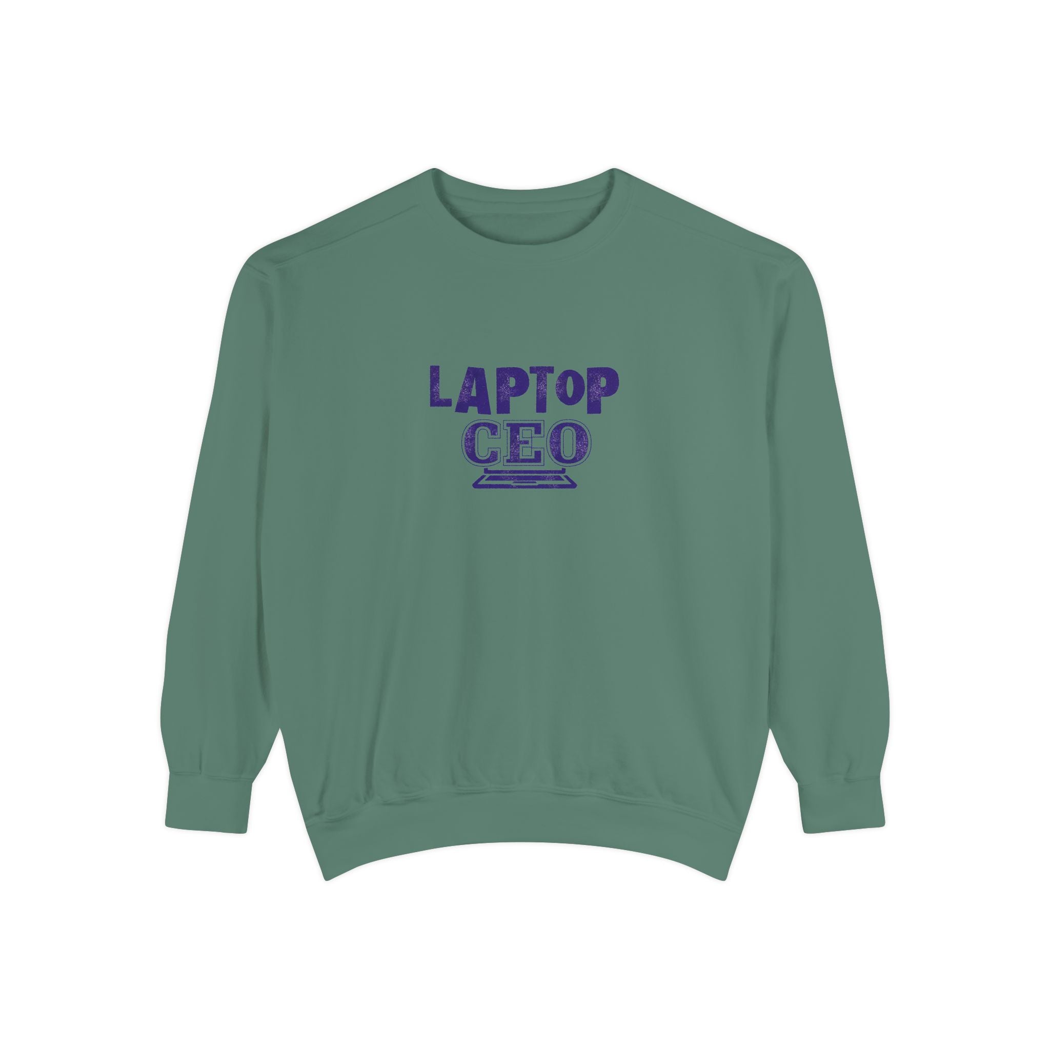 Laptop CEO Sweatshirt — 'Be Your Own Boss' Garment-Dyed Crewneck