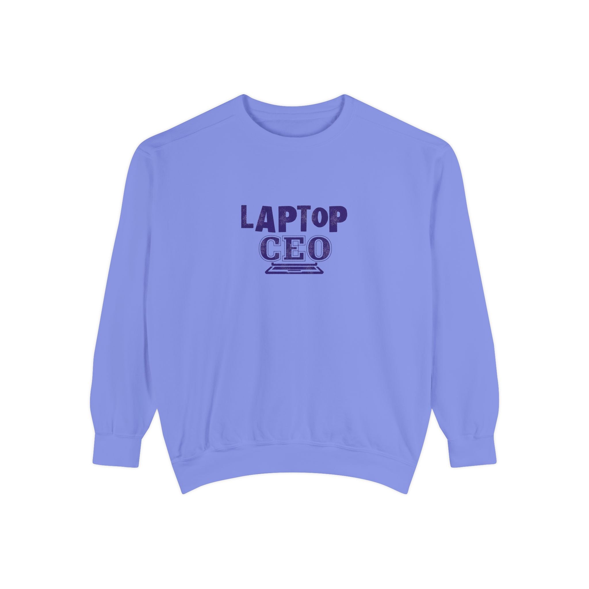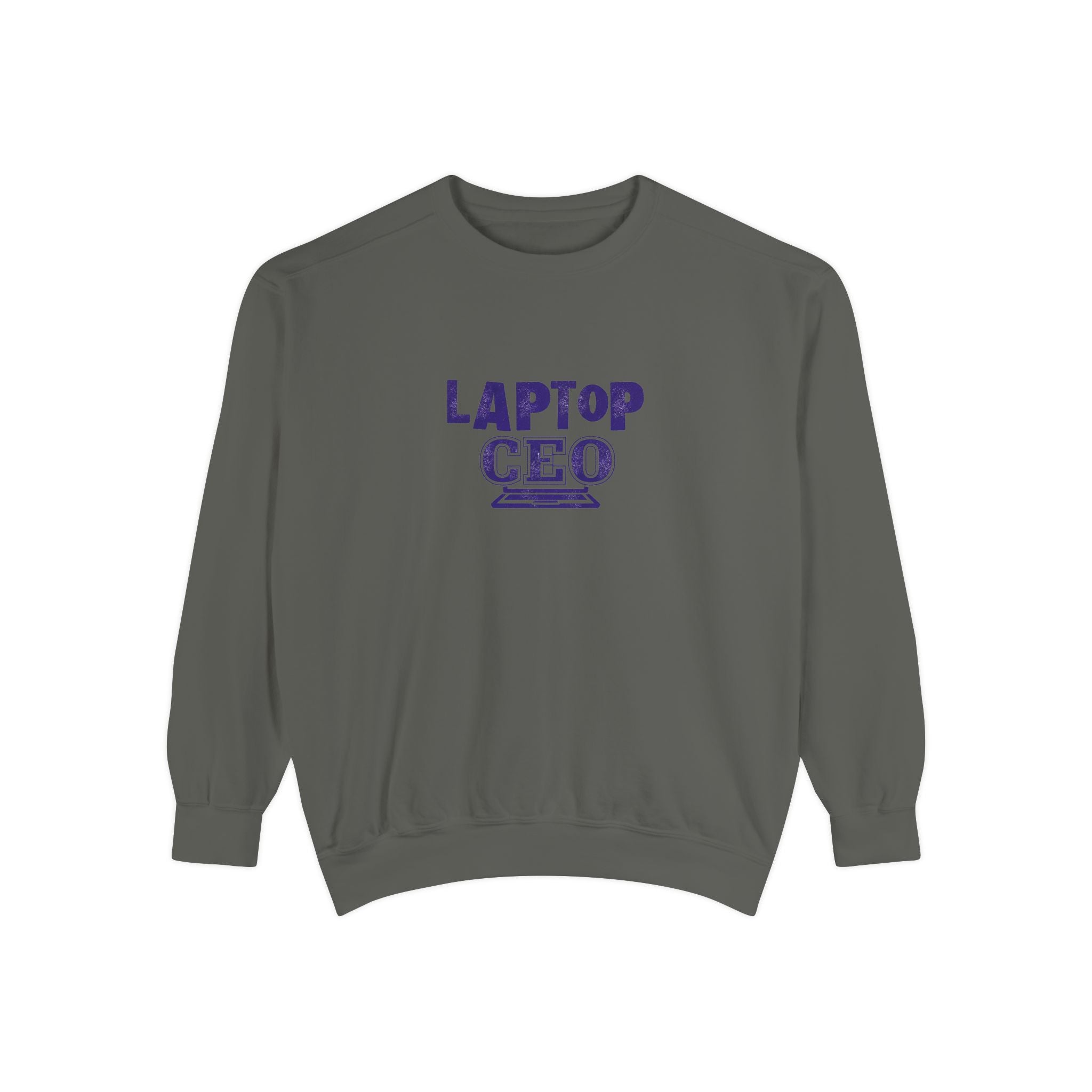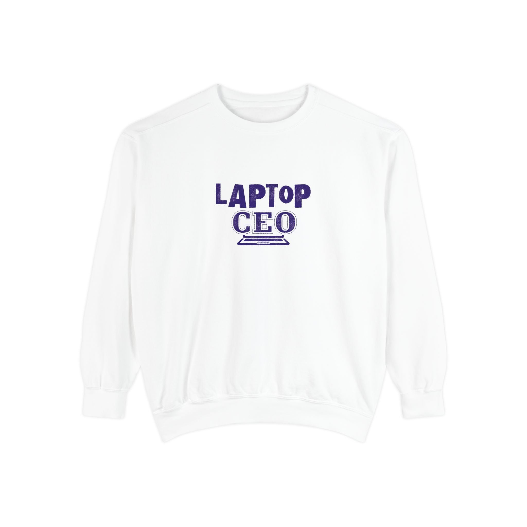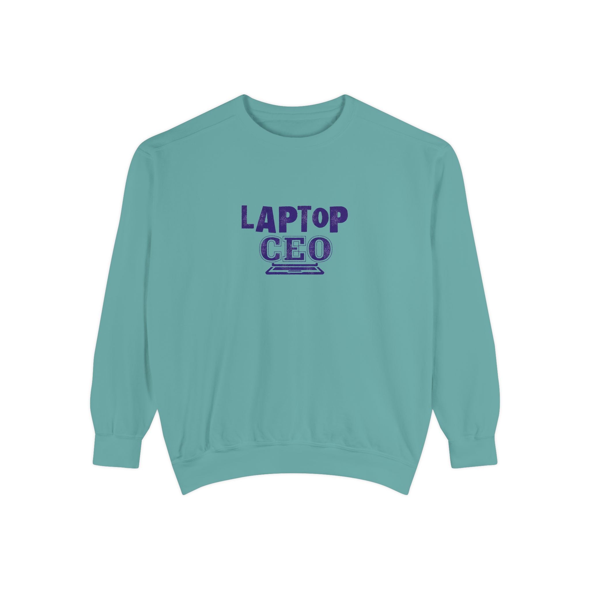 Laptop CEO Sweatshirt — 'Be Your Own Boss' Garment-Dyed Crewneck