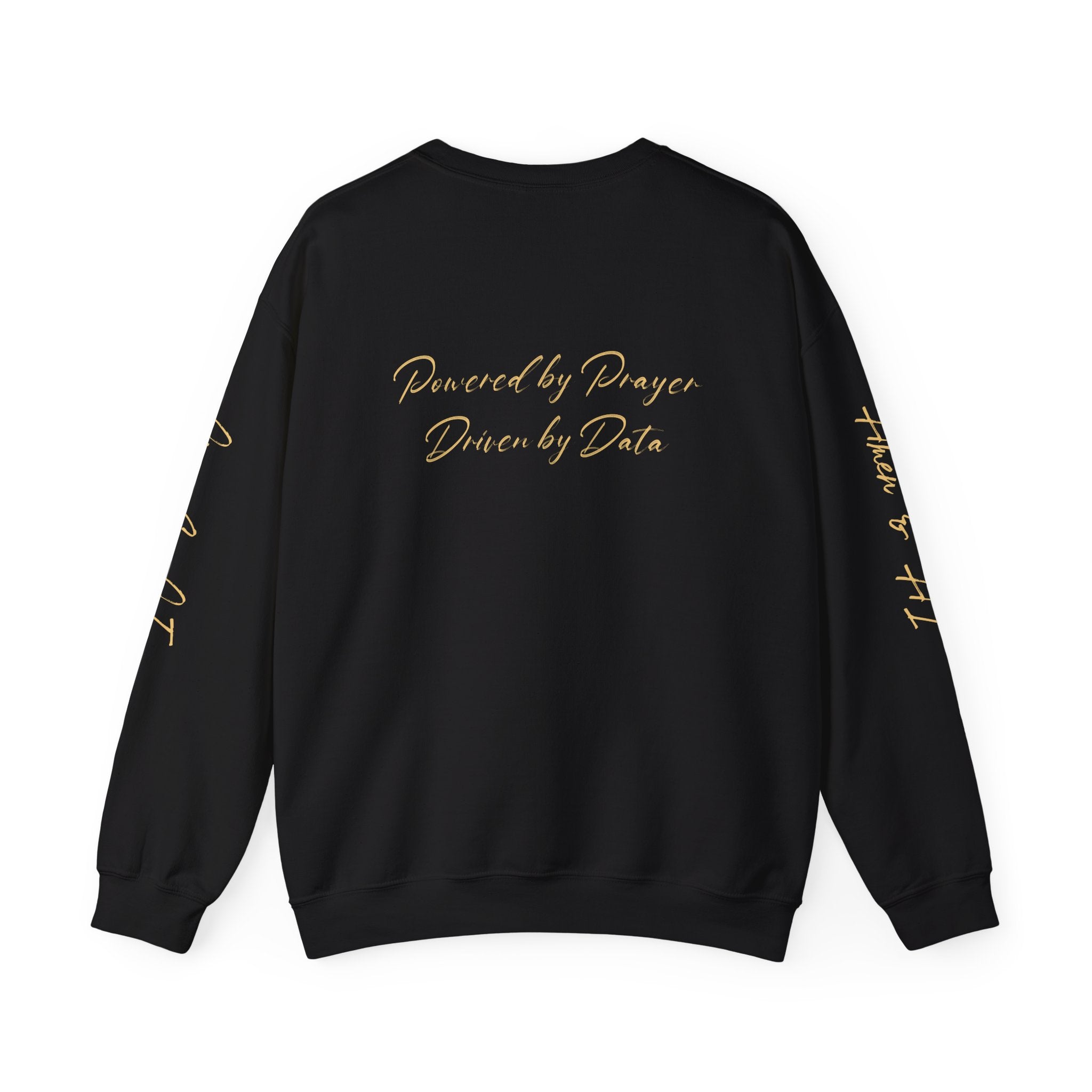 This crewneck sweatshirt blends quiet faith with modern tech wit. Soft yet substantial, the black sweater carries warm gold lettering across the chest and down the sleeves — subtle, confident, personal. The back reads “Powered by Prayer / Driven by Data,” a line that lands like a nod between late-night coders, ministry volunteers, or anyone who holds both prayer and purpose close. Wear it to community meetups, casual church nights, study sessions, or on coffee runs when you want your values and vocation to speak without shouting. The fit is classic and comfortable, with ribbed cuffs and hem that hold their shape after washes, and sturdy double-needle stitching for everyday wear. Embroidered and printed label details lend a handcrafted feel while still built for the routine of real life.