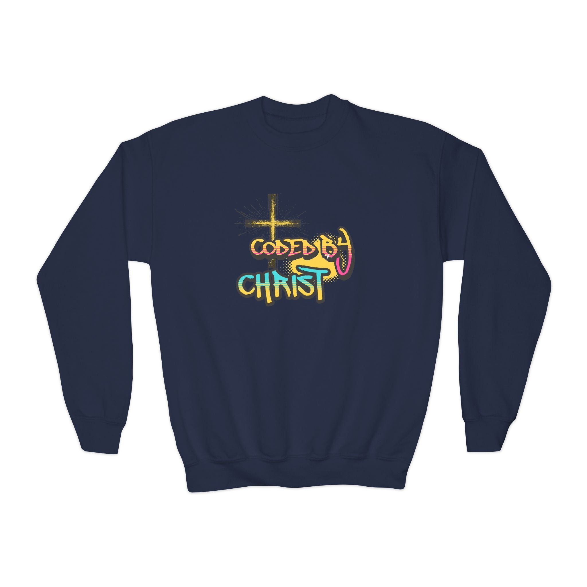 Youth Crewneck Sweatshirt - 'Coded by Christ' Colorful Faith Graphic